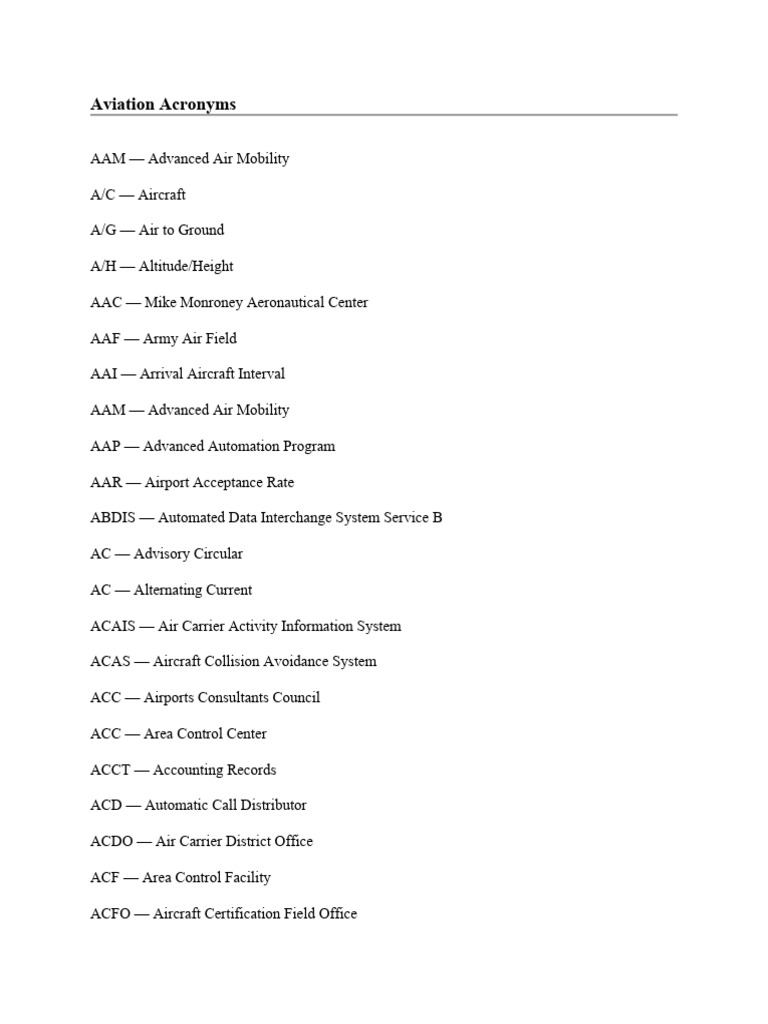 This List Includes Acronyms, Abbreviations, And Contractions For Aviation Use.