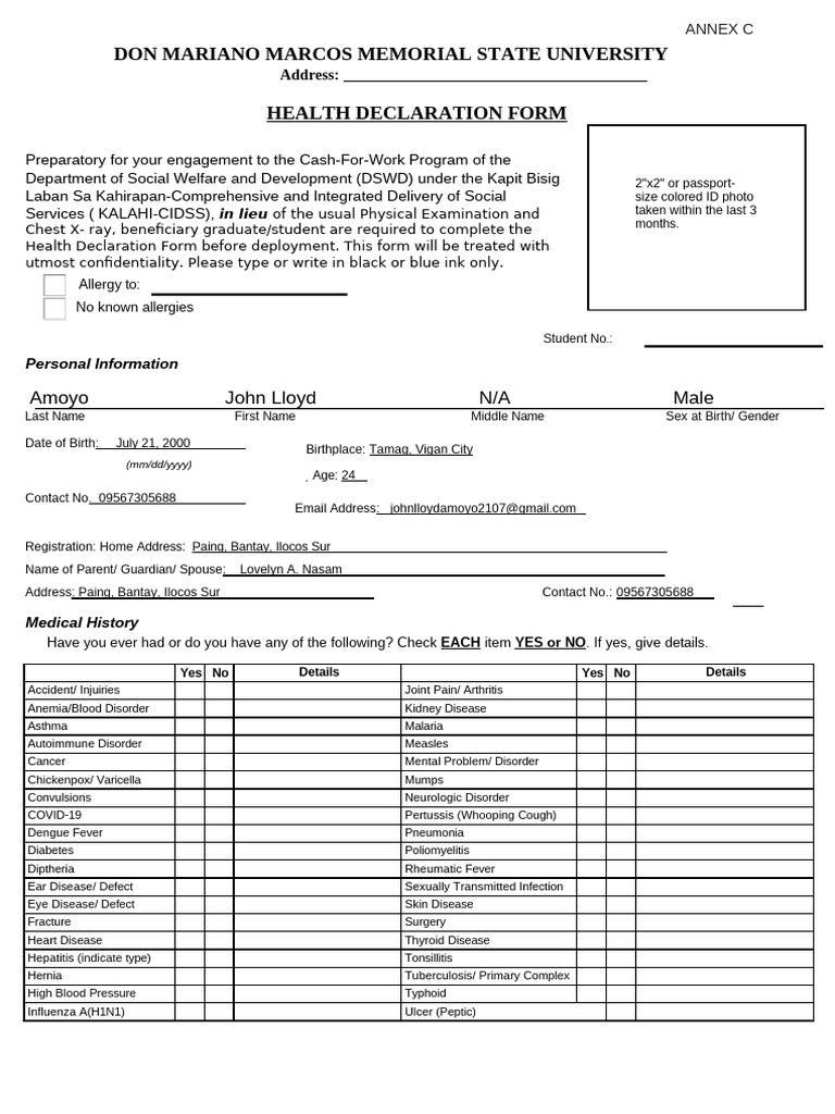 Annex C Health Declaration Form V1 PDF