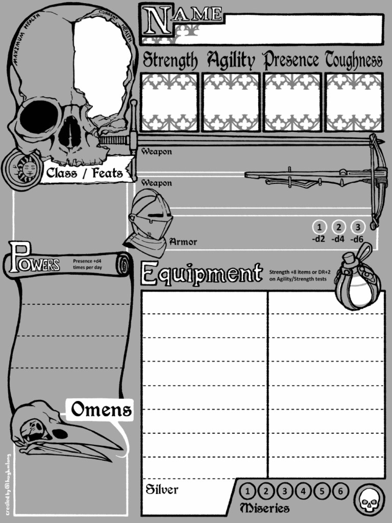 Start / games / horror / mörk borg. Download or stream character sheets for mörk borg, a swedish fantasy role. Find everything you need for mörk borg, the rules light rpg of doom and despair. A foldable and portable character sheet so you can take the soul of mörk borg with. A mini mörk borg character journal, perfect for doomed.