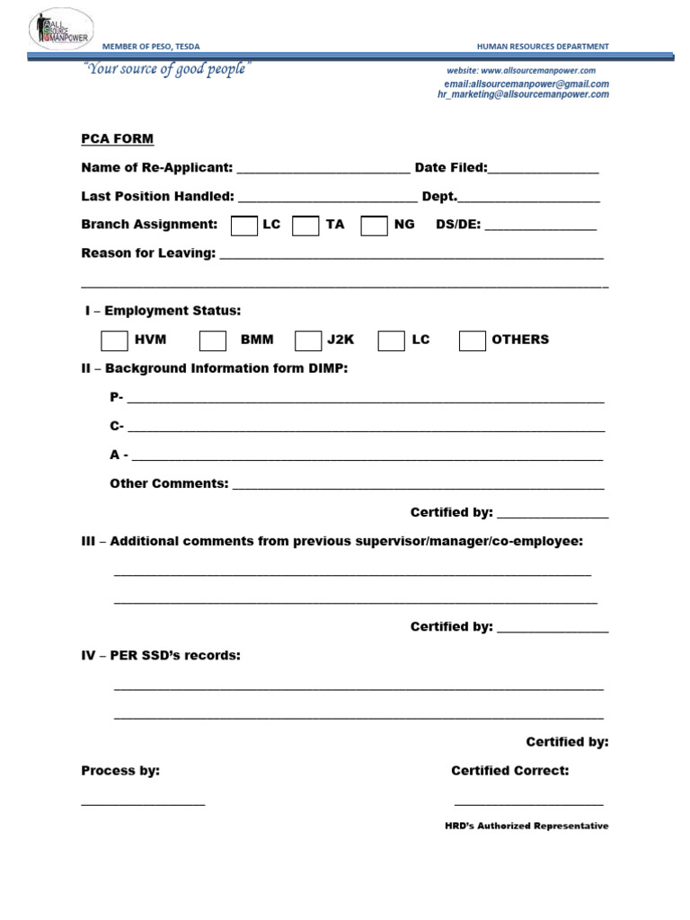 Pca Form PDF