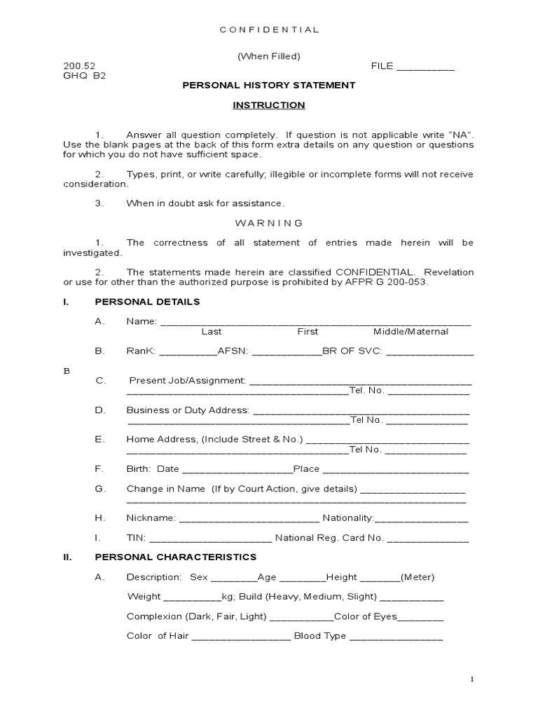 Download the pdf file of the special investor's resident visa (sirv) application form and. Form 2982, personal history statement instructions for opening a form some forms. Download and fill out this form for philippine coast guard personnel. Dr pigney from goldsmiths told us he's especially. 60 rev.0 (june 1, 2014) personal history statement (to be accomplished.