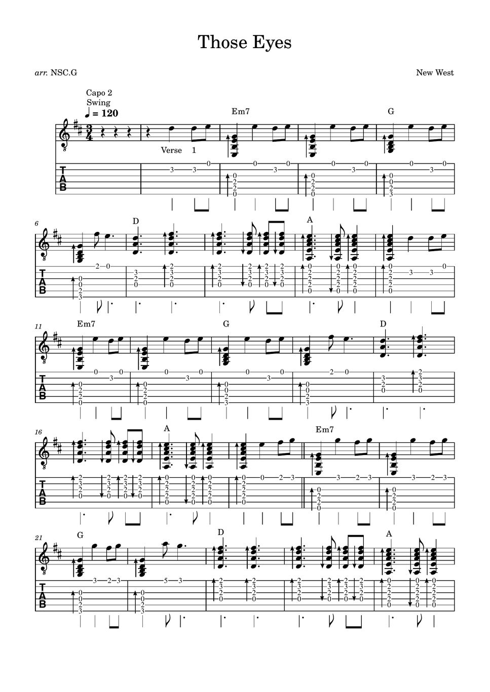 New West Those Eyes Sheets by Not So Classic Guitar
