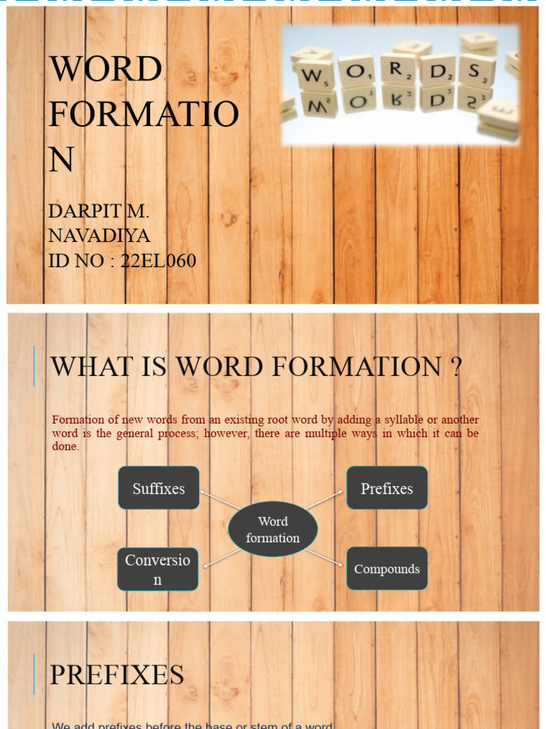Examples include photograph, iatrogenic, and many thousands of other classical words. There are four main kinds of word formation: Prefixes, suffixes, conversion and compounds. Here are some examples of the various types of word formation for your.