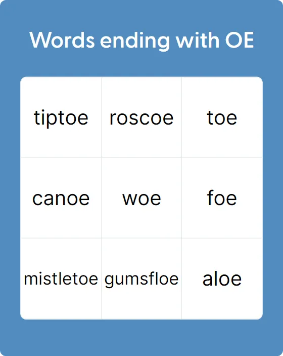 Words Ending With OE Bingo Card Creator
